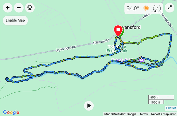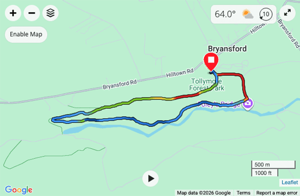 The race route takes in panoramic views of the Mourne Mountains and follows the forest path alongside the Shimna River in a gradual ascent past the Hermitage and through the beautiful forest where scenes from Game of Thrones were filmed. (Only a 40 minute drive from Newry).