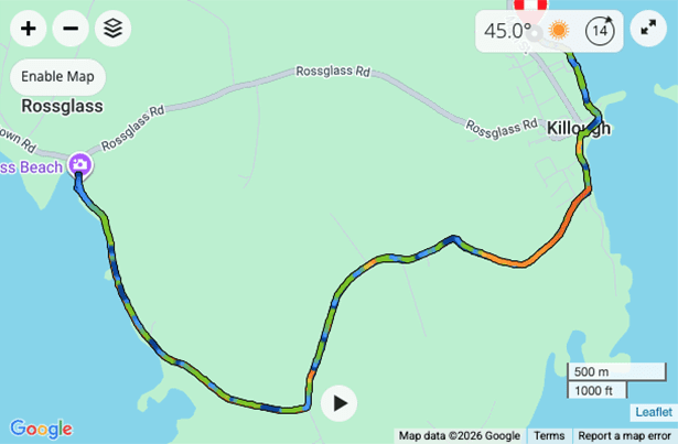 After reaching this landmark turning point, runners will make their way back towards Rossglass before joining the scenic main road towards Tyrella. This breathtaking stretch hugs the coastline, offering sweeping views of Minerstown Beach and the majestic Mourne Mountains. Just before Tyrella Beach, runners will make a U-turn and head for home, following the stunning route back to the finish line in Killough village.